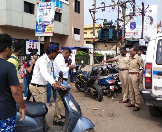 – चंद्रपुरात अंडर एटीन (18) मध्ये असलेल्या मुला मुलींवर धडक कारवाई मोहीम ट्रॅफिक पोलीस निरीक्षक प्रवीण कुमार पाटील व सहाय्यक पोलीस निरीक्षक आर बी वाघमोडे यांच्या आदेशाने आज नागपूर रोड येथील ईनसाईड इस्टुडन्ट समोर कारवाई करण्यात आली आणि येथील विद्यार्थी विद्यार्थिनी अंडर एटीन (18) च्या अंदर असणाऱ्यावर नियमानुसार कारवाई करून गाड्या जमा करण्यात आलेल्या आहे. चंद्रपुरात वाढती ट्राफिक व वाढते अपघात त्यात कमी वय असताना पालक आपल्या मुलांना गाडी हाती देत असतात आणि या मुलांचे ना तर लायसन्स असतात आणि नाही गाडी बदल कोणत्याही प्रकारची माहिती म्हणजे कोणी यांच्या समोर आले की अपघात नक्की कारण यांनि वळणावर कधि इंडिकेटर देत नाही हॉर्न वाजवत असतात कारण यांना गाडीबद्दल माहितीच नसते याच कारणामुळे अपघाताचे प्रमाण जास्त वाढत चाललेले आहे.