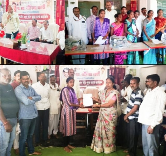 काँग्रेस नेत्या खा. सोनिया गांधी यांच्या वाढदिवसानिमित्त इटोली येथे शिलाई मशीन व नोट-बुक वाटप