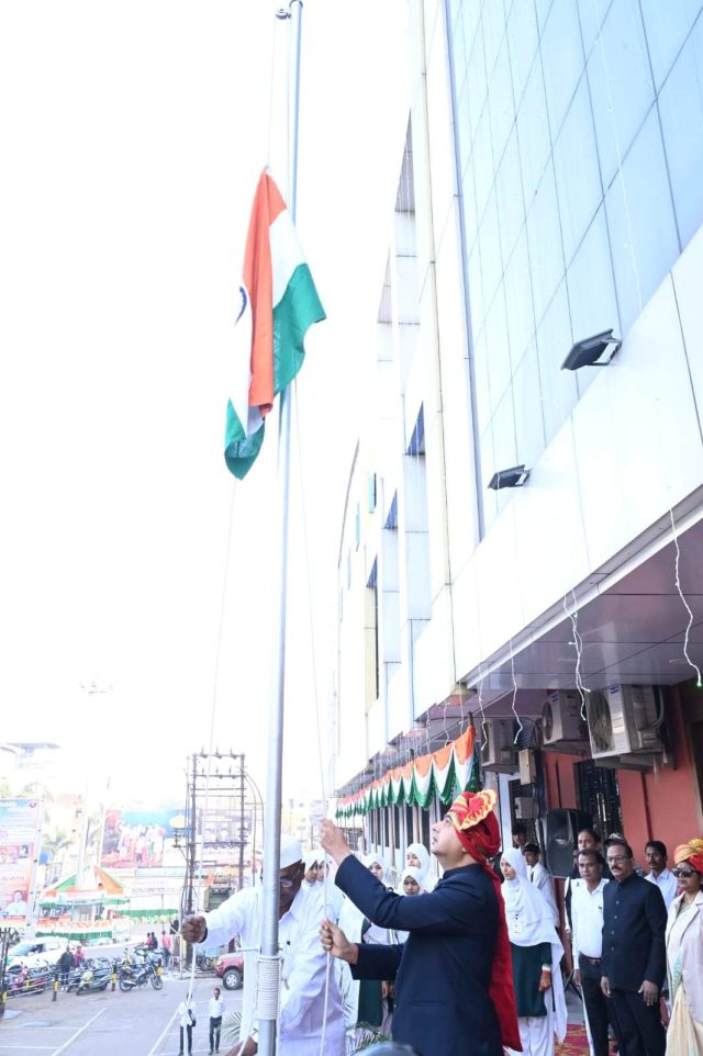 चंद्र्पुर :-चंद्र्पुर शहर महानगरपालिकेच्या वतीने भारतीय प्रजासत्ताक दिनाच्या ७५ व्या वर्धापन दिनानिमित्त गुरुवार दिनांक २६ जानेवारी २०२४ रोजी सकाळी ७:५० वाजता महानगरपालिकेच्या मुख्य प्रशासकीय कार्यालयात आयुक्त तथा प्रशासक विपीन पालीवाल यांच्या हस्ते ध्वजारोहण करण्यात आले.