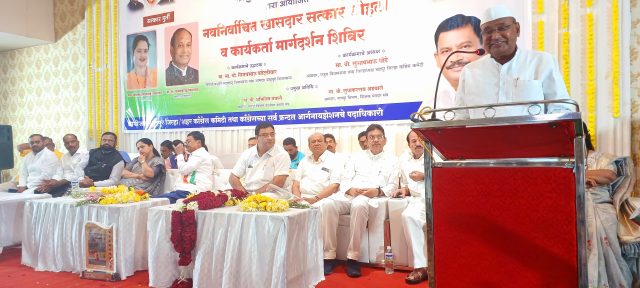 जिजाऊ हॉल दाताळा रोड चंद्रपूर येथे जिल्हा कांग्रेस कमिटी द्वारा आयोजित कार्यकर्ता मेळाव्यास  उपस्थित राहून मार्गदर्शन करतांना गडचिरोली -चिमूर लोकसभा क्षेत्राचे खासदार डॉ.नामदेव किरसान