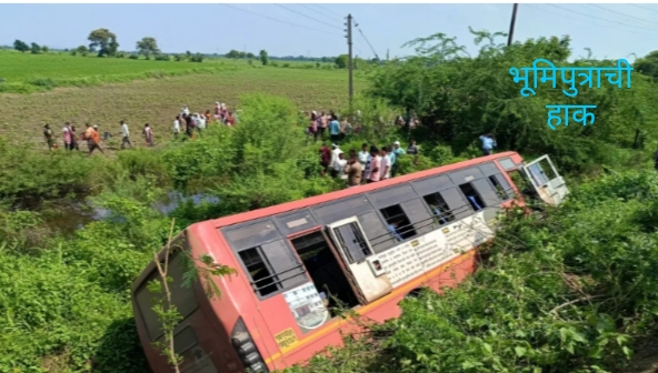 समोरून येणाऱ्या ट्रॅव्हल्स च्या येण्याने अचानकबस चे स्टेरिंग वळवताना ब्लॉक झाल्याने नियंत्रण सुटले व बस दहा फूट खाली कोसळली….