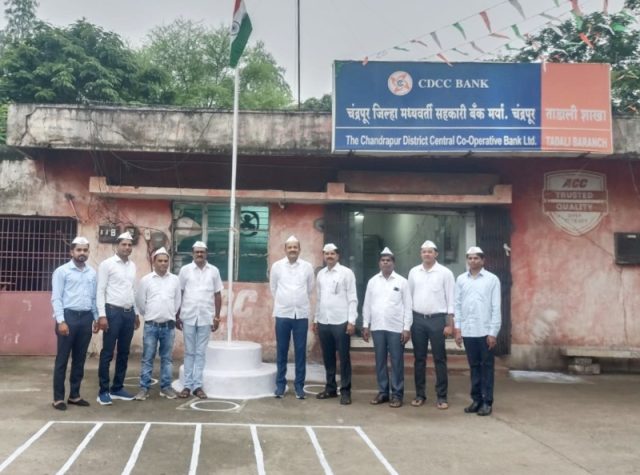 चंद्रपूर, १६ ऑगस्ट :– स्वातंत्र्य दिन हा सर्व भारतीयांसाठी एक महान आणि गौरवशाली दिवस आहे. हाच दिवस आपल्याला आपल्या स्वातंत्र्याच्या इतिहासाची आठवण करून देतो आणि त्यासाठीच्या संघर्षाला अभिवादन करतो. या अनमोल दिवशी, जिल्हा मध्यवर्ती बँकेचे संचालक दिनेश दादापाटील चोखारे यांनी स्वातंत्र्य दिनाच्या औचित्याने चंद्रपूर जिल्ह्यातील ताडाळी येथील बँक शाखेत ध्वजारोहण केले.