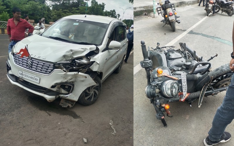 चंद्रपूर | 22 ऑगस्ट :- चंद्रपूर जिल्ह्यातील वरोरा नाका चौकात आज पुन्हा एकदा वेग, थरार आणि बेफिकीरपणाचा परिणाम दिसून आला. भरधाव वेगात असलेल्या एका महागड्या बाईकस्वाराने टर्निंग घेणाऱ्या कारला जोरदार धडक दिली. या भीषण अपघातात बाईकस्वार युवक गंभीर जखमी झाला असून त्याची प्रकृती चिंताजनक असल्याचे सांगण्यात येत आहे. ही दुर्घटना विश्रामगृहासमोर दुपारी सुमारे 12.30 वाजण्याच्या सुमारास घडली.
