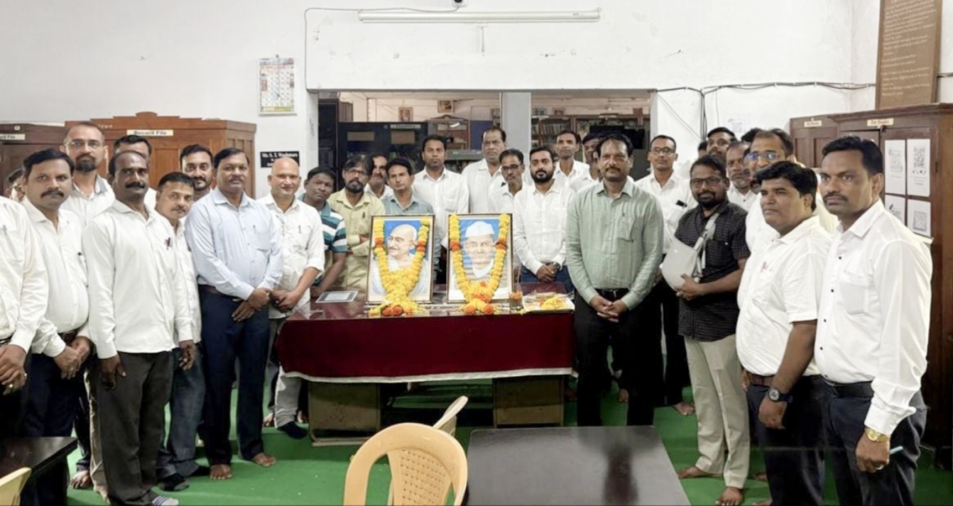 यानंतर महाविद्यालयाचे प्राचार्य डॉ. ए. के. महातळे, शिक्षक व शिक्षकेतर कर्मचाऱ्यांनीही दोन्ही महान नेत्यांच्या प्रतिमांना पुष्पहार व पुष्पांजली अर्पण करून त्यांना अभिवादन केले